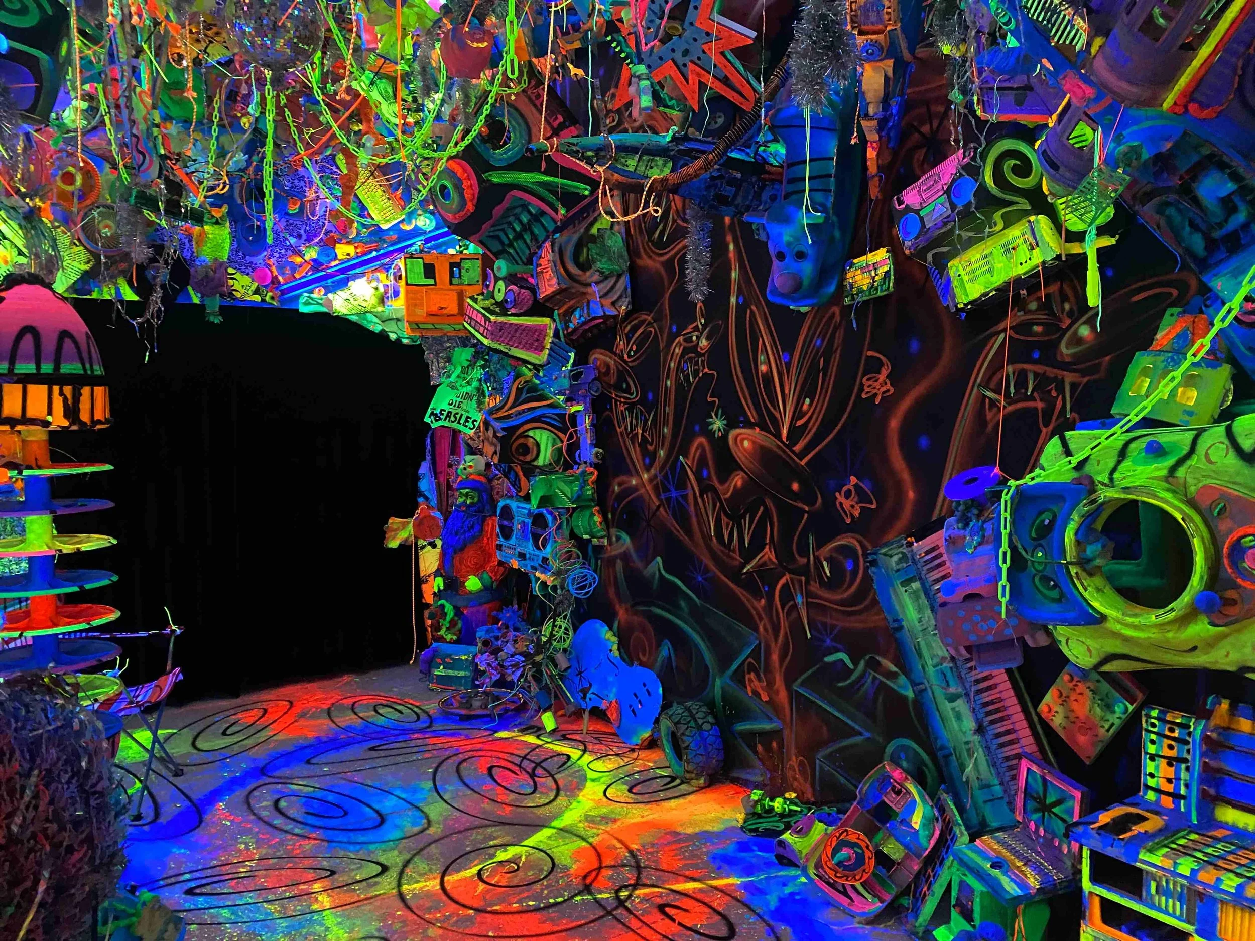 Photography by Kenny Scharf, The Cosmic Cavern, playful, dayglo party installation, inspired by the night-clubs & discos of the 1980s.