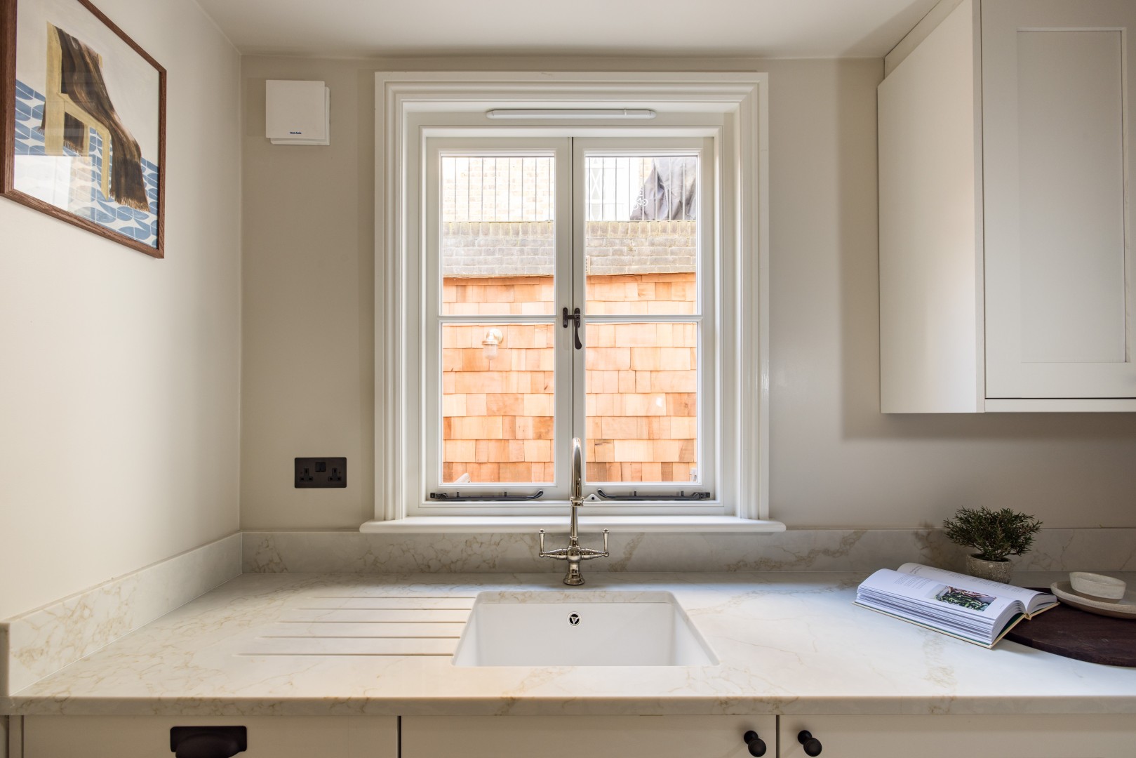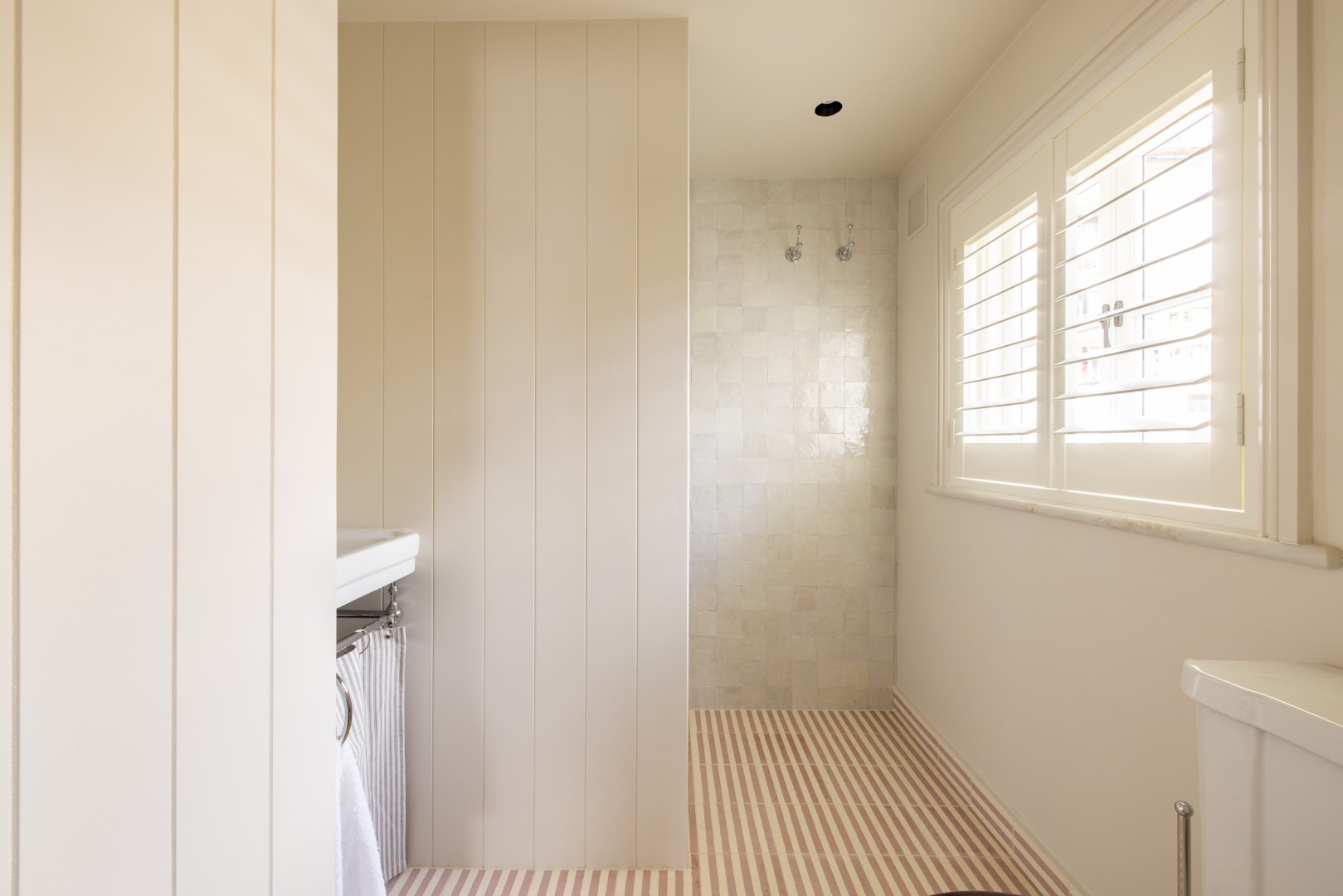 Welcome to our stylish home, where modern design meets functionality across three inviting floors. On the ground floor, an open-plan living and dining area sets the stage for relaxation and convivial gatherings. Step outside to our quaint courtyard, complete with a small table and chairs, perfect for enjoying a morning coffee or an evening drink. The kitchen, adorned with a pocket sliding door, effortlessly combines openness with privacy.