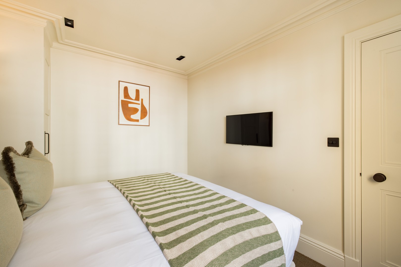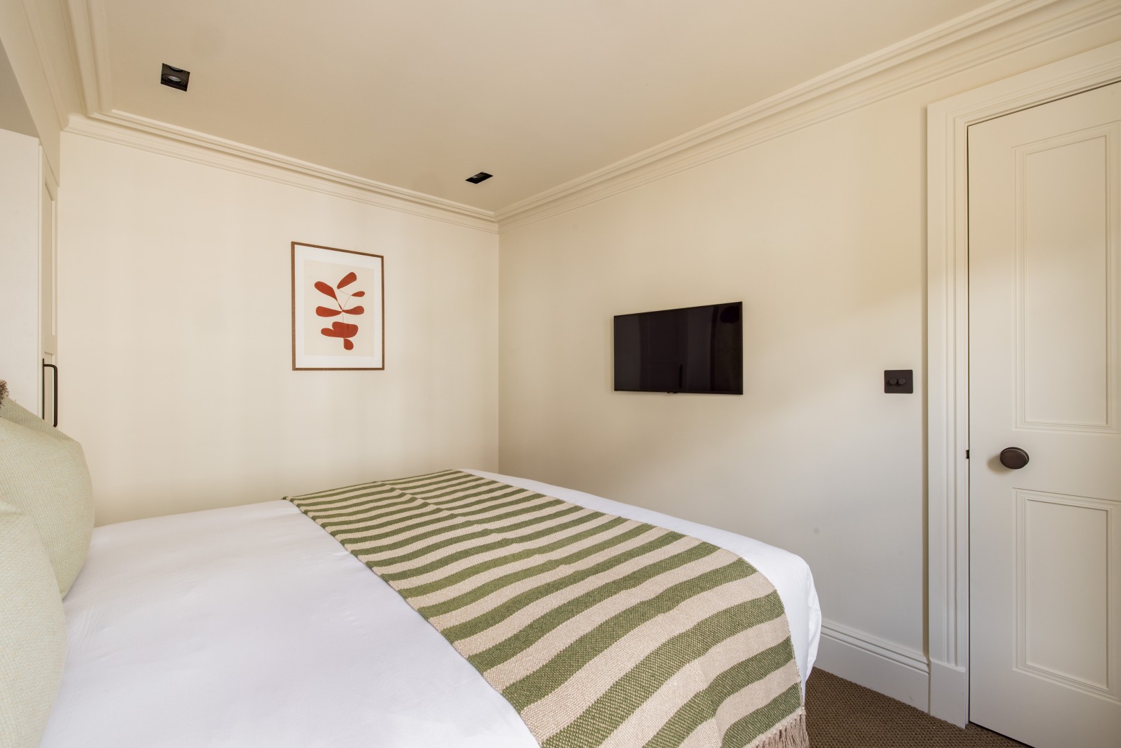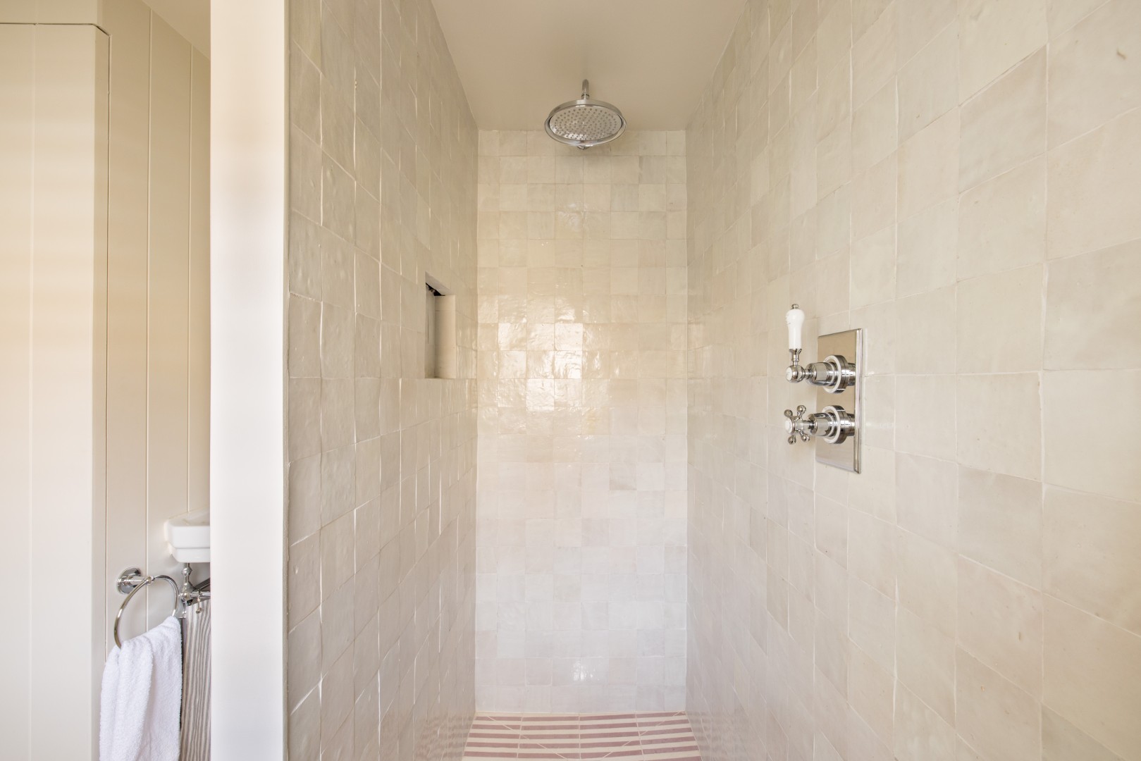 Venture upstairs to the first floor, where a luxurious bathroom awaits, boasting a rejuvenating rain shower over the bathtub. Two spacious bedrooms beckon – one featuring a UK king-size bed and the other a larger UK super king bed – promising restful nights and rejuvenating slumber.