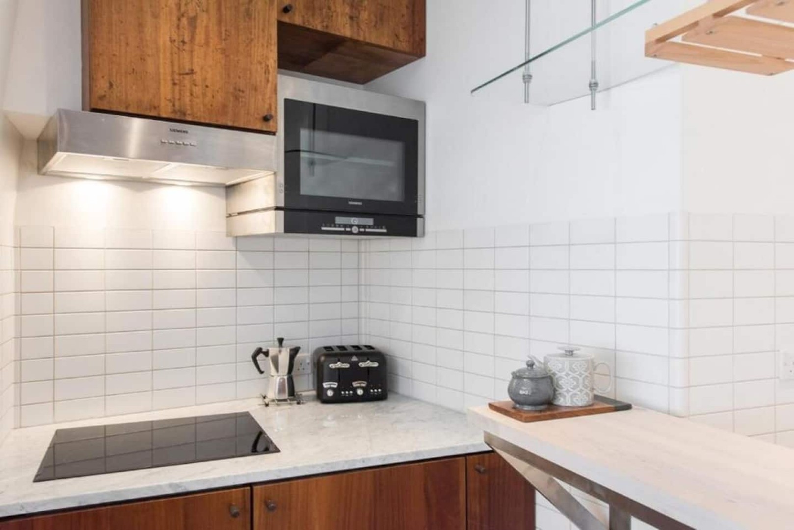 With a kitchen bar and bench space, fitted with bespoke kitchen units, marble surfaces and tiling detail, the fully equipped kitchen is fantastic.