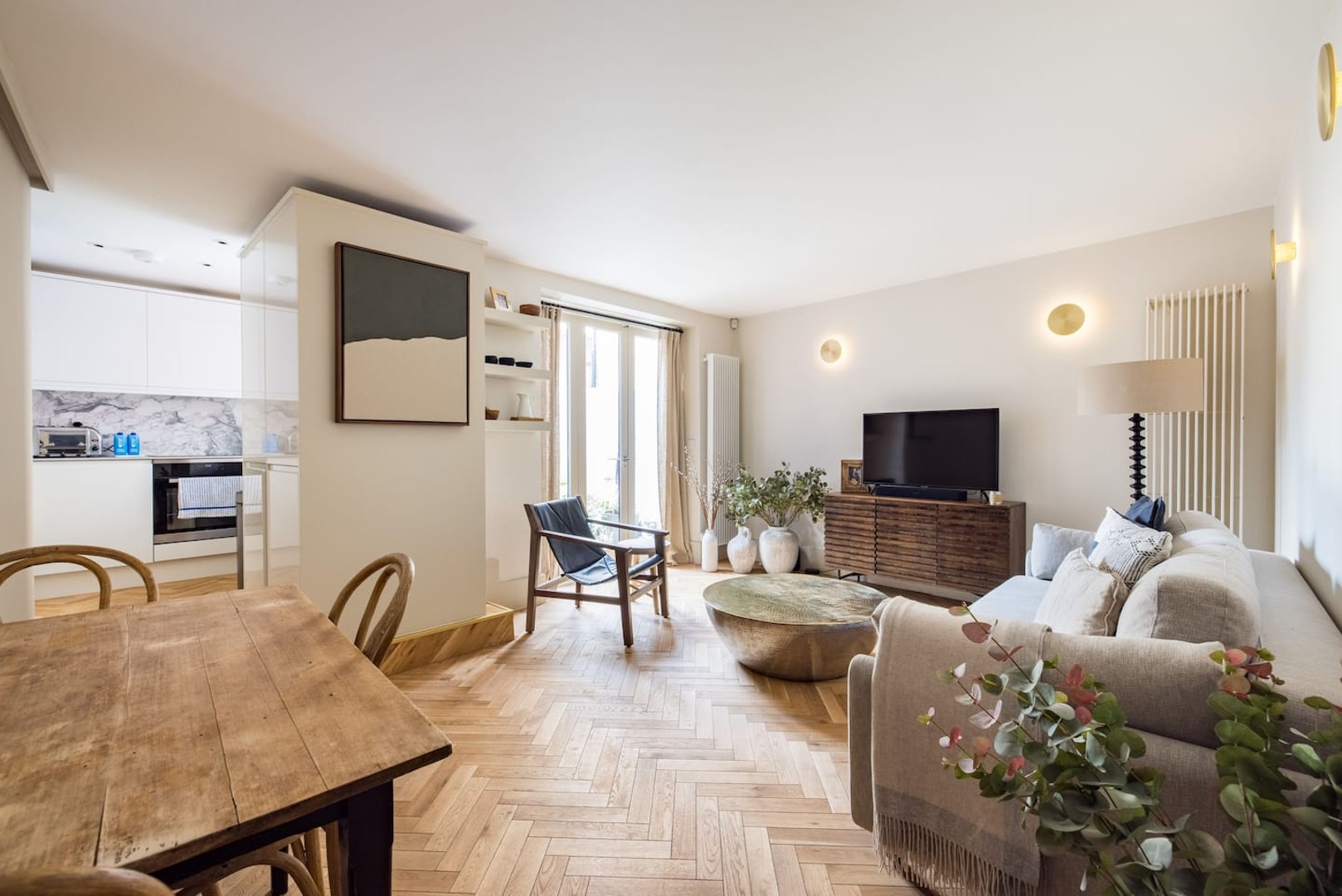 Recently refurbished, you’ll enjoy the comfortable bed, well-equipped kitchen and large TV (Netflix, Amazon Prime etc). The sofa bed offers extra space if you’re a group of 3 or 4 and the additional TV in the bedroom offers a separate area for movie lovers. Decorated in soft earthy tones, this garden apartment has a feeling of the Mediterranean in the heart of Notting Hill.