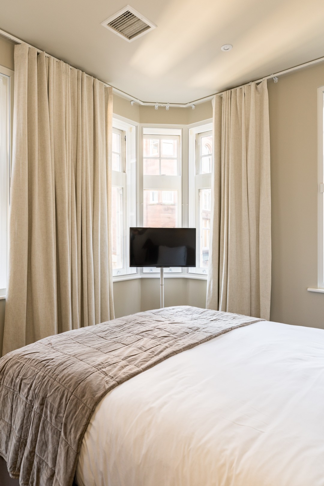 Continue through the living space to reach the second bedroom at the rear of the apartment. The layout works especially well for shared stays, as the bedrooms are separated for added privacy. While the living room is cosy in size, it’s thoughtfully arranged and has everything you need for a comfortable stay.