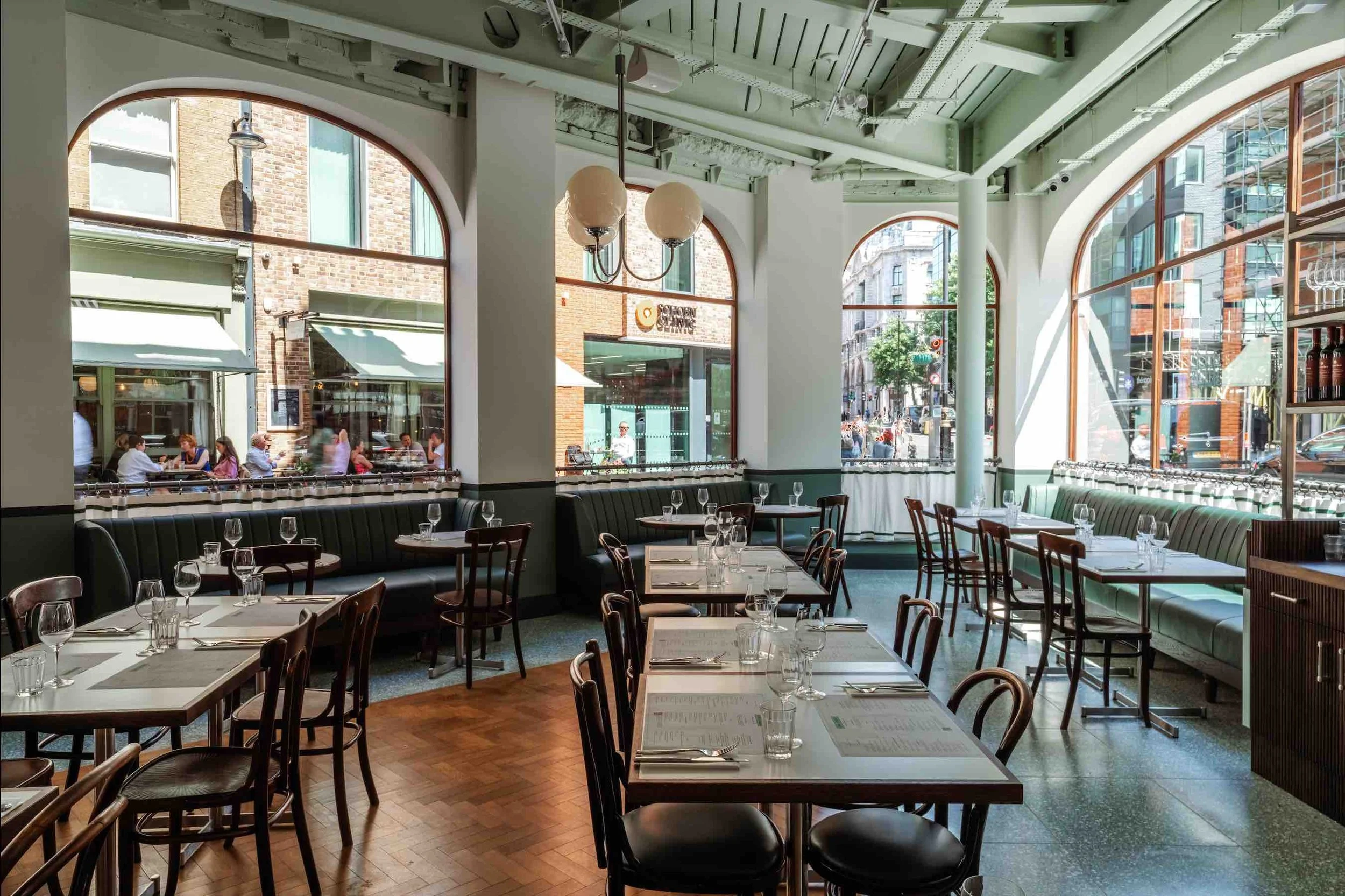 For design lovers, Lina Stores Marylebone is the perfect go-to and is reliably as cool as the rest of its bunch. Evoking a real sense of space across its two floors, the brand’s trademark pistachio reigns supreme throughout with parquet wood floors, generous windows and soft globe lighting working together to complement the open kitchen, all-day restaurant dining space and downstairs Art Deco basement bar.