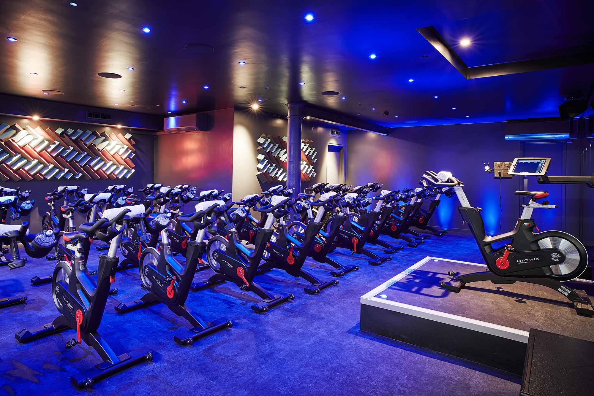 And where to every Jekyll there’s a Hyde, the studio’s contrasting dark-lit spaces especially devoted to spin classes are sensational. Neon up lights and 3D-wall installations amidst thumping tunes fuel motivation to get the heart racing.
